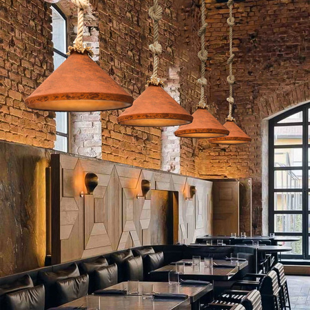 Lampa wisząca RUST E27 z metalowym kloszem w rdzawym kolorze zaprezentuje się dobrze zarówno pojedynczo jak i w kilku egzemplarzach - tworząc indywidualną kompozycję.