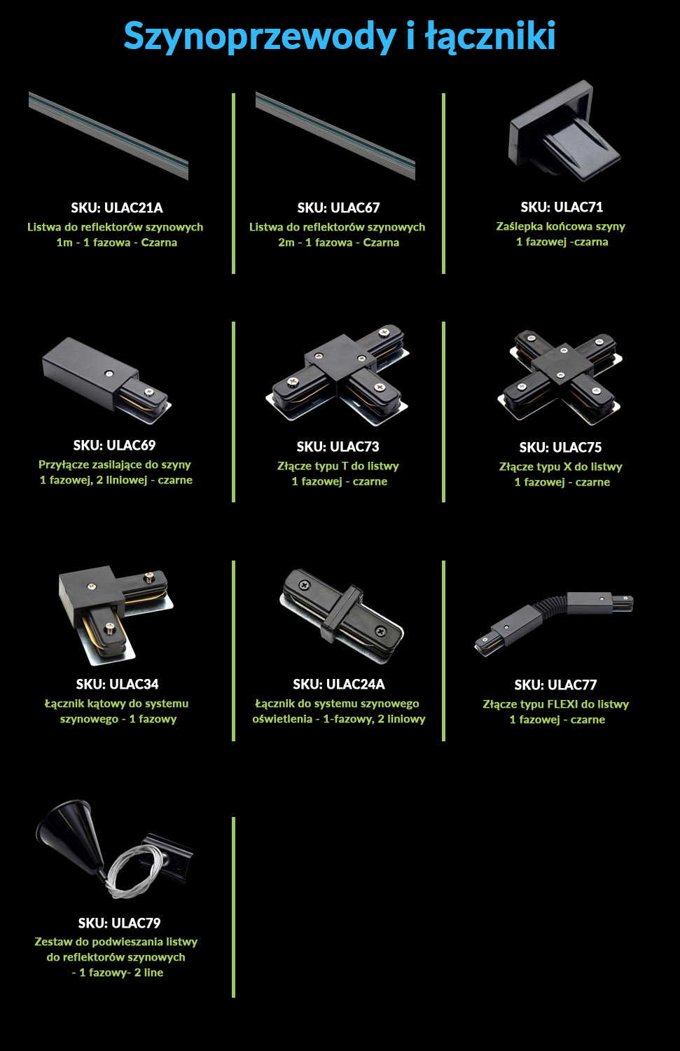 Zestaw do Podwieszania Listwy do Reflektorów Szynowych - 1 Fazowy- 2 Line - Czarny ULAC79 Unilight